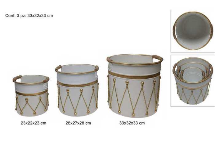 CESTO TAMBURELLO 3PZ BCO/ORO