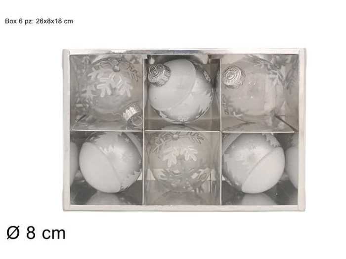 PALLE 8CM 6PZ SILVER/BIANCHE