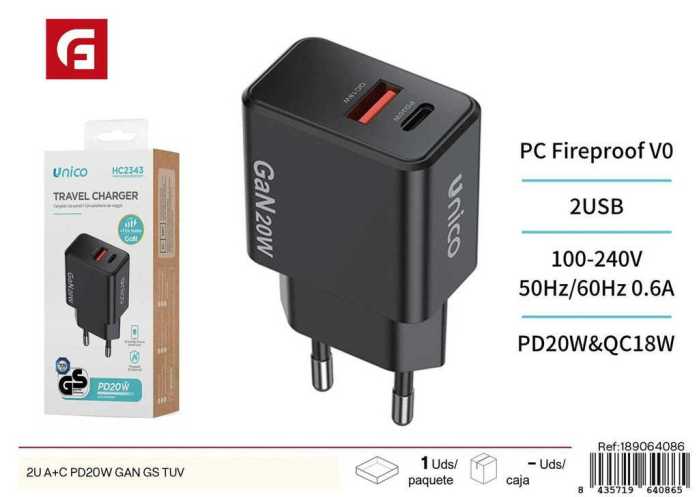 CARICABATTERIE 2U A+C PD20W