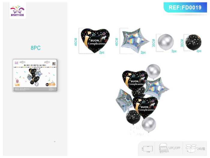 SET MYLAR ORO NERO B.COMPLEANN