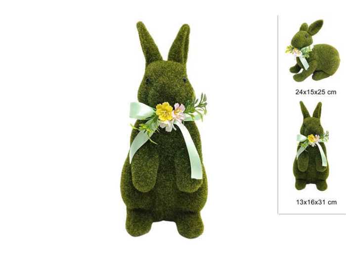 CONIGLIO 31CM C/FIORE VERDE