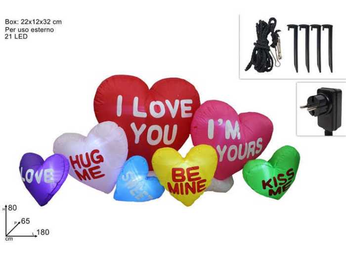 GONFIABILE CUORI 180CM C/LED