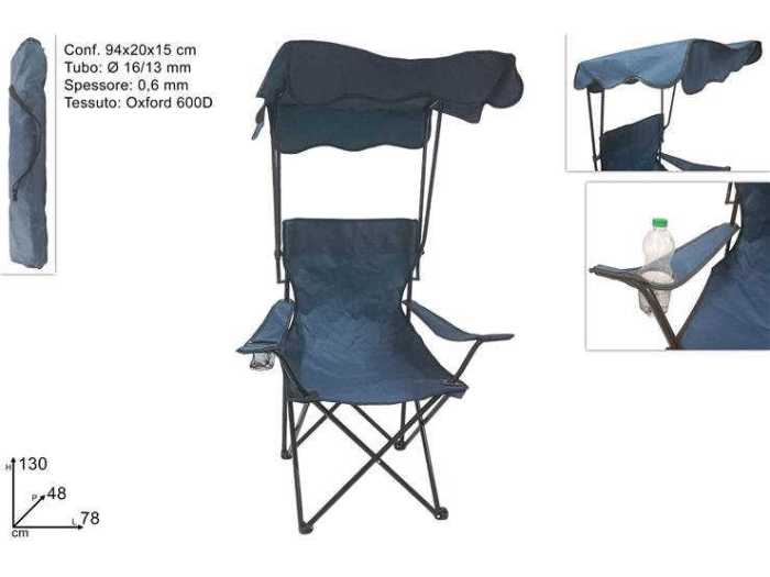 SEDIA CAMPING BLU CON PARASOLE