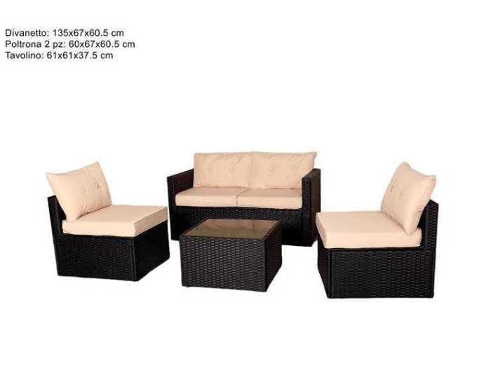 SET DIVANI+TAVOLO RATTAN NERO